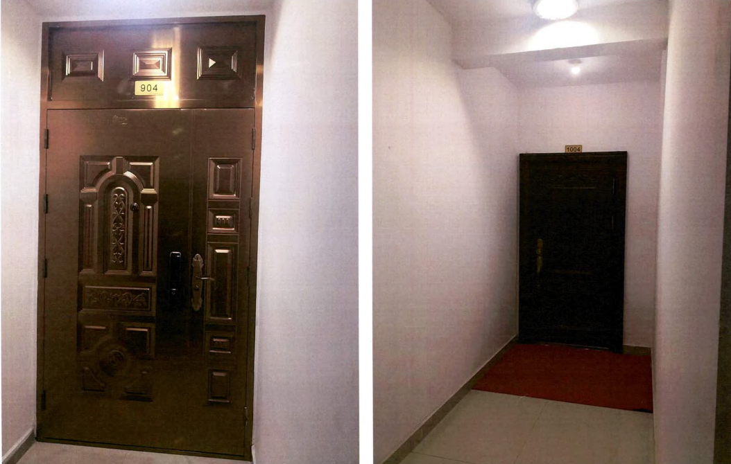 左为小波家外移后入户门,右为楼上邻居原有入户门